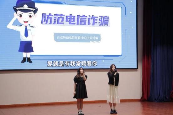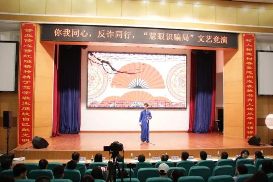 本次活动表演形式丰富多彩,反诈版的相声小品、一首重新填词的反诈版歌曲《爱你》,甜甜的歌声中传递出满满的防诈干货。从“点击链接即可获得高额奖金”到“你儿子出车祸要钱救命”,相声表演《你好,骗子》中,面对搭档设计的各类骗局,自称“防诈专家”的段嘉亮不点链接不转账,见招拆招,坚决不上当,让观众在轻松幽默的氛围中了解骗子的诈骗套路和反诈措施。节目内容经过同学们充满创意的改编趣味十足,除了各类表演节目,活动现场还安排了趣味抽奖的中场环节,随机抽取现场观众上台进行游戏互动和防诈骗知识问答,并准备了各色精美奖品给中奖观众,真正做到了互动感满满。各位同学通过观看节目和参与互动,做到各种反诈小知识入脑入心。