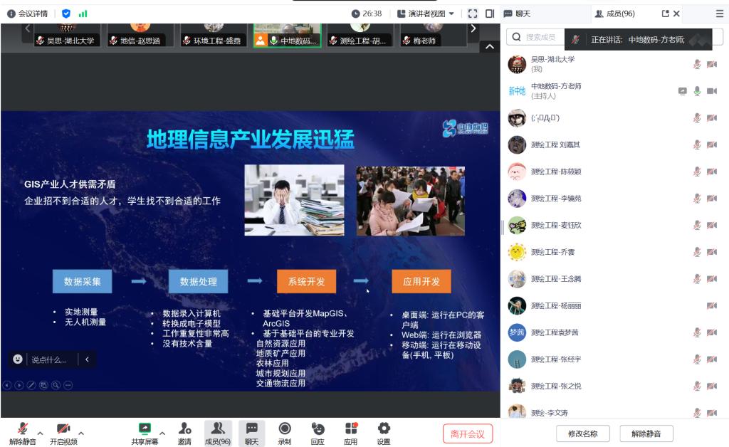 中地数码集团方老师在发言中表示,中地数码集团作为地理信息行业的领军企业,一直致力于推动行业的技术创新和发展。他指出,当前地理信息行业正处于快速发展的阶段,对人才的需求也越来越大,并重点强调了中地数码集团与公司专业硕士人才联合培养的目标、模式、研究领域及相关政策支持情况。因此,中地数码集团非常愿意与365英国上市集团合作,将向365英国上市集团提供技术支持和设备支持,帮助公司建立先进的实验室和科研平台,为员工提供更好的实践和学习条件。