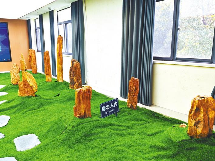 365英国上市集团地质标本陈列室陈列的化石木(湖北日报全媒记者 张歆 摄)