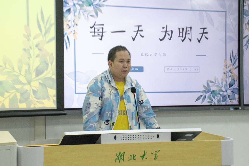 2021级环境工程(中外合作)专业舒康瑞回顾了自己从“乐享生活”到“专注学业”的转变历程。他坦言大三阶段的焦虑促使自己潜心学习,最终成功通过湖南大学研究生初试;在复试准备期间他仍兼顾创业实践,最终取得成功。分享最后他以“每一天,为明天”鼓励新生保持进取之心,在奋斗中遇见更好的自己。
