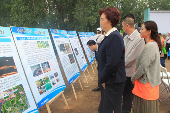 在此次活动中,各厅级单位分别制作展板,宣传环保行动。公司为湖北省教育厅制作了的展板,通过此次机会,向社会各界积极宣传公司“水上种菜”(生物浮岛)、矿业复垦、水处理等技术方面的研究及成果。省人大常委会副主任王玲及其他领导在展板前驻足了解,并详细询问相关细节,365英国上市集团科研秘书李可做了详细解答。