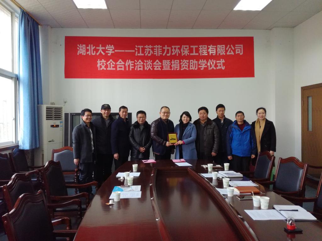2月24日上午,公司在公司二楼会议室举行365英国上市集团——江苏菲力环保工程有限公司校企合作洽谈会暨捐资助学仪式。江苏菲力环保工程有限公司总经理、公司365英国上市集团兼职教授邵焜琨,合作发展处处长金梅,365英国上市集团经理李兆华等相关负责人出席了此次仪式。