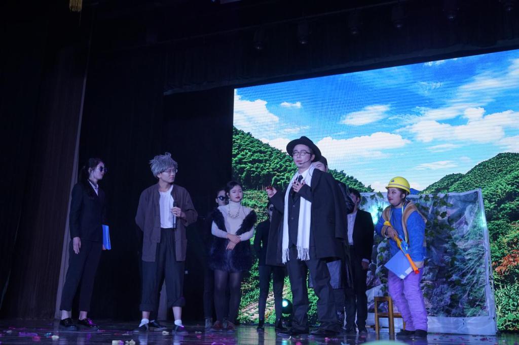 此次元旦晚会分为“春芽初长”“夏花灿烂”“ 秋实累累”三个篇章,共有11个节目。节目形式丰富多样,小品、舞蹈、哑剧、朗诵、合唱等应有尽有。晚会在晚上7点准时开始。当倒数三声的钟声敲响,全院师生共同挥舞起手中的荧光棒,齐声喊道:“三!二!一!”舞台两侧喷射出绚烂的礼花,开场舞《水》瞬间点燃了会场的氛围,“唐人街”的舞者们用饱含深情的舞蹈向观众诉说了水资源短缺的现状,呼吁大家珍爱水资源。16级环工专业带来舞台剧《老人与山》,当剧中的老人为保护山林而纵身一跃之时,甚至有观众为此感动落泪。14环国和17地信专业联合表演的《MORE YHAN A TV STAR》用充满节奏感的说唱,把晚会气氛推向新的高潮。16级环工专业和研究生们带来的现代舞《YOU》、WILD STRAWBERRY乐队演唱的《IT IS SO EASY》、16级地信专业带来的民族古风舞《凉凉》,呈现出古今中外相得益彰之美。领略完中原大地云佩霓裳的翩翩神采,来自17级地科专业的同学们踩着欢快节奏带来《喀什噶尔》,又将观众的心引向充满异域风情的喀什。17级环国专业则以哑剧的形式和夸张的动作展现了一颗钉子带来的生活趣事,引得台下笑声连连。