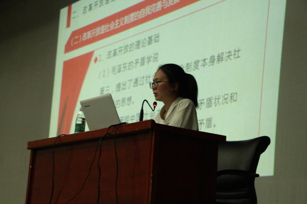 最后一节课,何斯婕导员以“我国改革开放40周年的回顾与展望”为主题,对我国四十年来改革开放的成果进行了高度的概括。