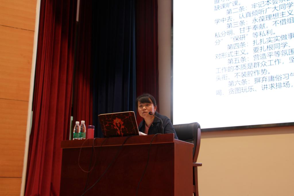首先由教育公司公司党委副书记余燕老师主讲,以“新时代青年老员工的历史使命与责任担当”为主题。余燕老师分享了习近平总书记“中国青年说”的七句话,同时联系当代杰出老员工的事迹,向同学们介绍了宋玺、刘薇、刘明侦等同学的故事,进一步点明了新时代老员工的使命与责任。紧接着余老师以近期某些高校员工会、社团的官僚习气为反例,号召全体员工要有新时代员工应有的情怀与担当。最后余老师以“朝霞般美好的理想,正在向你们召唤,你们是一滴一滴的水,全将活跃在祖国的大海里!”作为结语,表达了对同学们的殷切希望。