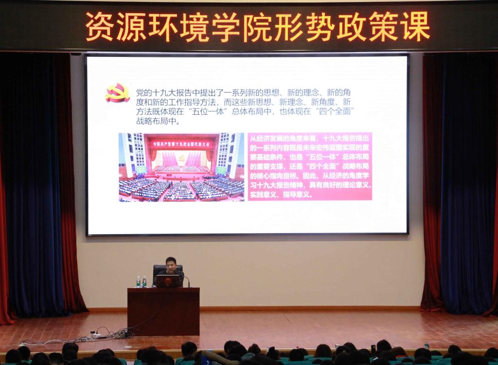 通识教育公司辅导员李文老师围绕“以新发展理念引领现代化经济体系建设”,引导同学们从经济角度学习十九大报告,更深刻地体会十九大的理论意义、实践意义、指导意义。