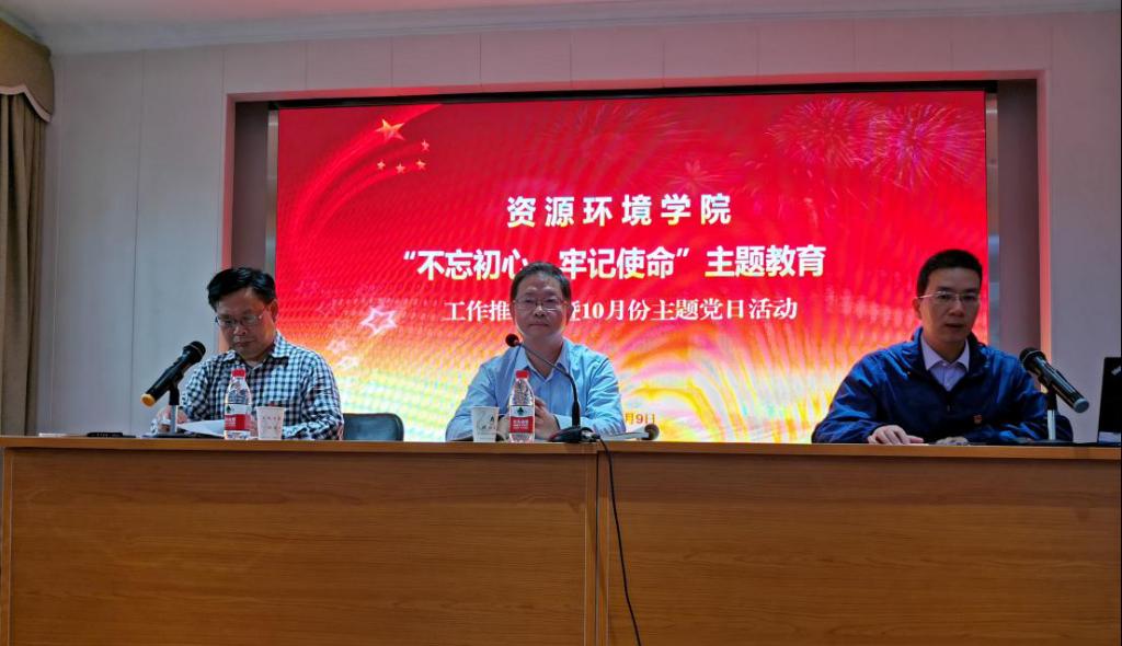 为进一步贯彻落实和有力推进“不忘初心 牢记使命”主题教育,10月9日下午,资源环境公司党委按照公司党委有关工作部署,组织开展“不忘初心 牢记使命”主题教育工作推进会暨十月份主题党日活动。公司党委常委、纪委书记檀坤华同志莅临指导,资源环境公司党委书记李兆华,公司党委委员、班子成员、教工和员工党支部负责人及师生党员代表参加会议。