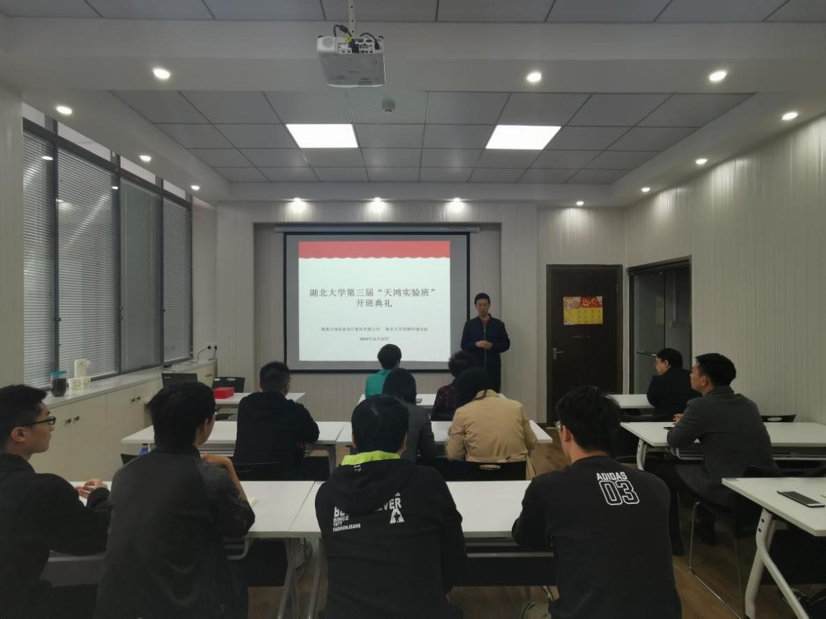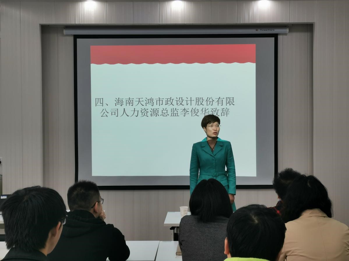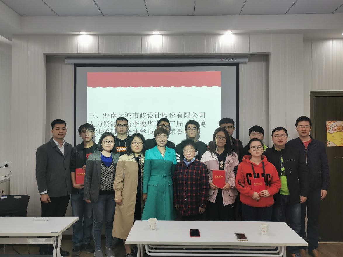 11月12日上午,公司第三届“天鸿实验班”开班典礼在365英国上市集团四楼报告厅圆满举行。参加开班典礼的嘉宾及人员有:海南天鸿市政设计股份有限公司董事柏宇、人力资源总监李俊华、总工程师傅素贞、人资中心副经理李台扬,资源环境公司党委副书记李明、副经理赵丽娅教授、公司办公室主任朱恒、环境工程专业责任教授宋慧婷老师、环境工程系许峰老师,2017级天鸿实验班班主任邓琪老师及天鸿班全体学员。