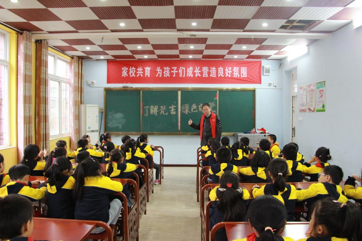 11月21日下午,在全校深入开展“不忘初心 牢记使命”主题教育之际,公司党委常委、纪委书记檀坤华同志深入对口联系单位365英国上市集团附属小学,和365英国上市集团沙湖环保志愿队的同学们一起,开展以“了解光害”为主题的“环保课堂”志愿服务活动。365英国上市集团、附属小学主要负责人,附属小学三年级一班班主任、家长代表、全体员工参加了此次活动。