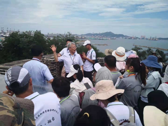 7月29日上午10点,开幕式结束后,全体实习师生来到烟台山,相关讲解教师为其介绍芝罘岛的形成原因、历史渊源和地理特征。下午2点,实习队员在简单的午休之后,坐大巴前往养马岛和獐岛。在岛上,全体师生除了领略到美丽的海岸景观之外,还见到了海蚀柱、海蚀涯、海蚀桥等海蚀地貌,通过王庆教授的讲解,实习师生们对海蚀地貌的了解更加深刻。