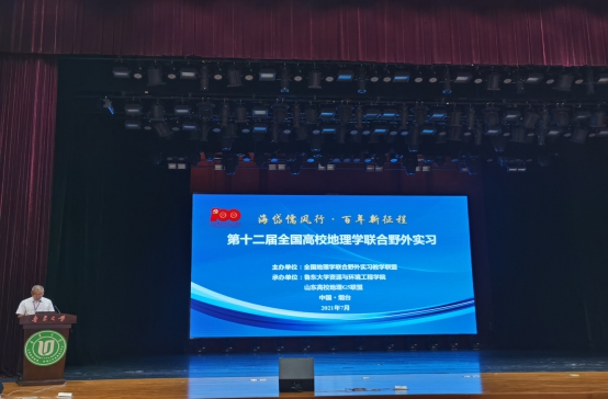 7月29日上午8点,开幕式在鲁东大学学术交流中心正式举行。开幕式上,鲁东大学董事长王庆、教育部教学指导委员会副主任武汉大学教授刘耀林、教育部教学指导委员会委员陕师大副董事长董治宝教授、教育部教学指导委员会委员首师大副董事长李小娟教授、教育部教学指导委员会委员哈师大副董事长臧淑英教授、教育部教学指导委员会委员北京联合大学经理张宝秀教授先后致辞,鲁东大学资源与环境工程公司曾琳副教授介绍实习行程和实习内容。最后,教育部教学指导委员会副主任华东师大教授郑祥民作动员报告。