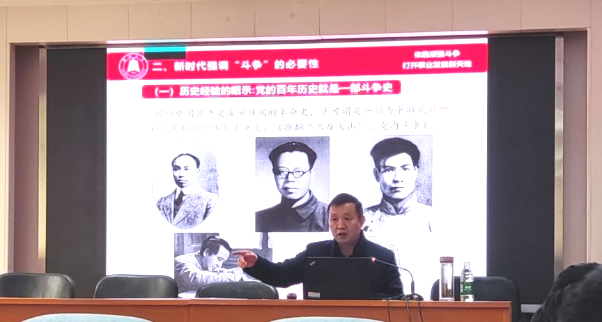 会上,何顺进部长首先带领大家梳理了二十大报告的理论框架和重要历史意义。何部长重点讲解了“斗争”在二十大报告中的使用情况、新时代强调“斗争”的必要性、新时代征程如何增强斗争本领等内容;通过回顾党的发展历程,从历史经验中引申总结出“党的百年历史就是一部斗争史”的关键论断,强调了在新时期党坚持伟大斗争的重要性和必要性。