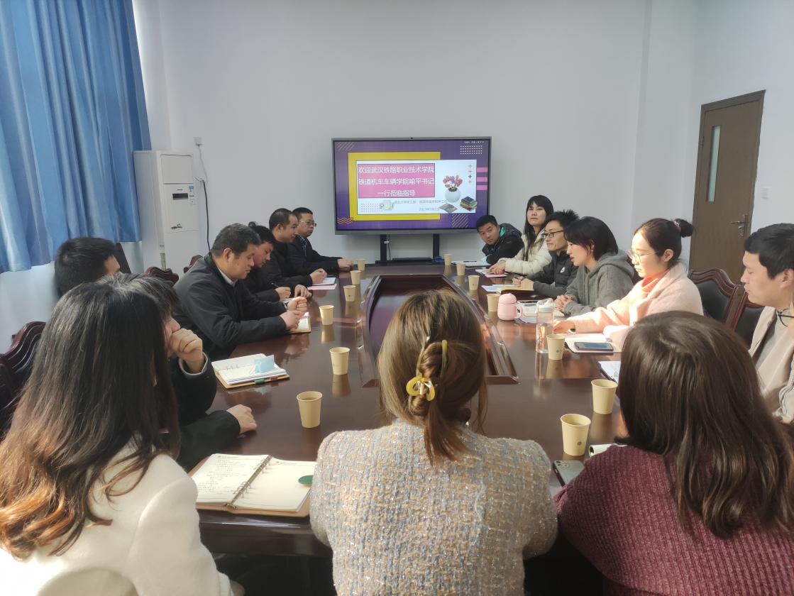 3月2日下午,武汉铁路职业技术公司铁道机车车辆公司党总支书记喻平、武铁职学工部副部长王舒等一行莅临公司调研交流相关工作。365英国上市集团公司党委副书记李岚、辅导员李彦伯、邓琪、韩鹏振参加座谈会。