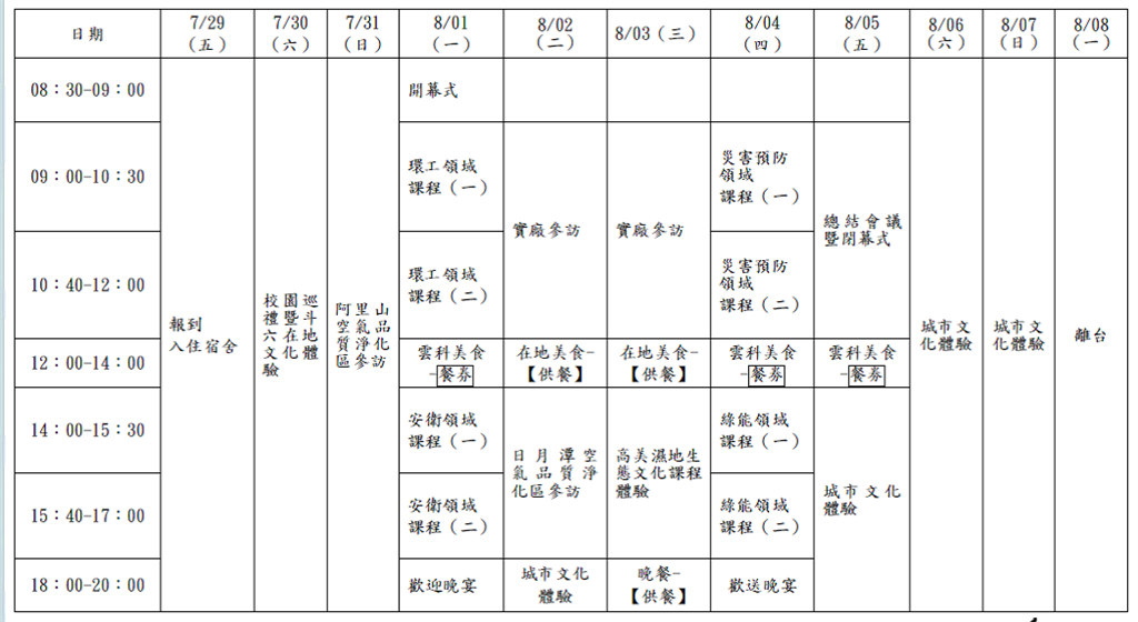 附件:2016年环安卫暨绿色科技暑期研习营日程表