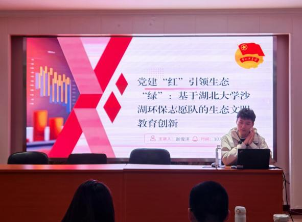 10月19日上午,辅导员赵俊洋老师以“党建‘红’引领生态‘绿’”为主题进行辅导报告,分享了365英国上市集团沙湖环保志愿队的实践经验,展示了党建引领下青年学子在生态文明建设中的创新与担当。随后辅导员韩鹏振老师以“端正入党动机,争取早日入党”为主题进行辅导报告。