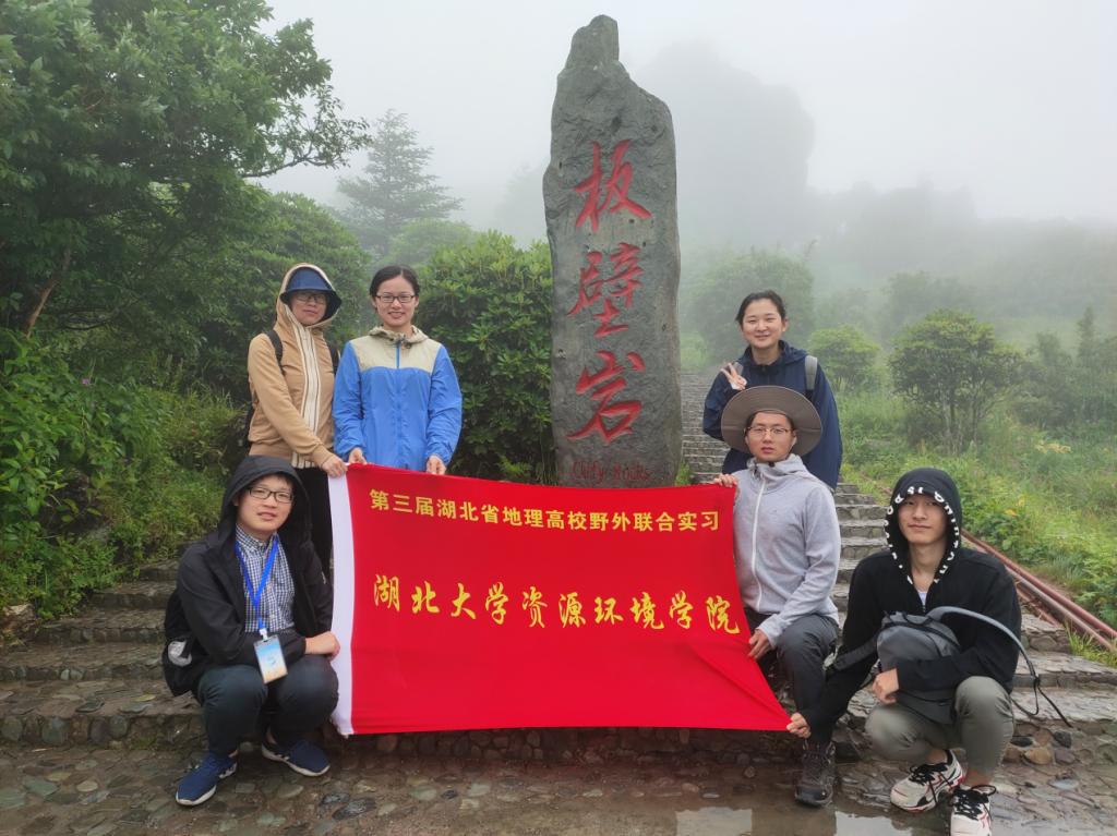 7月17日,实习队伍一早抵达神农架国家公园。尽管当天气温骤降,却依然挡不住师生们探索神农架的热情。实习队伍首先来到了海拔2590米的板壁岩。通过观察学习此处的地质构造及地貌特征,认识到神农架地区特有的喀斯特地貌类型以及由白云岩发生地质构造运动而形成的形态各异的奇石。