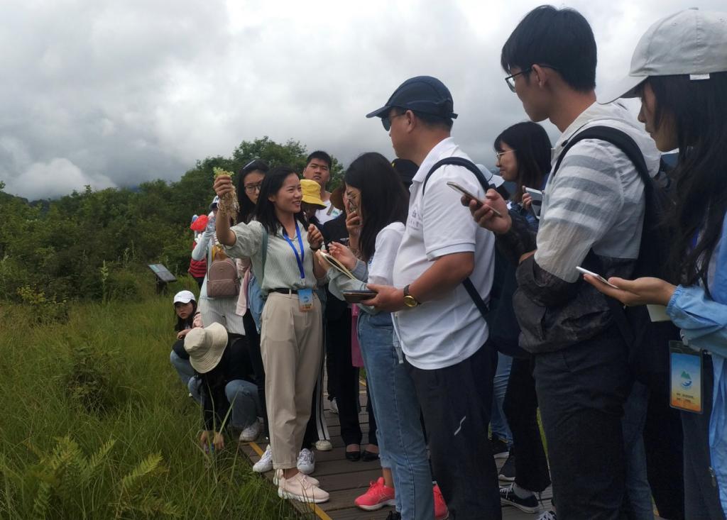 (图为公司李亭亭老师在大九湖湿地为大家讲解)