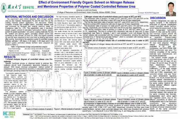 814-20日,2022年国际园艺学大会IHC2022)在法国里昂隆重举行。公司刘俊松教授作为国际园艺学会会员和有机热带和亚热带果树学会主席(Chair of ISHS Working Group Organic Tropical and Subtropical Fruits)应邀参加15日和16日线上会议,他提交的两篇学术论文【Effect of Environment Friendly Organic Solvent on Nitrogen Release and Membrane Properties of Polymer Coated Controlled Release Urea】和【Preparation and Efficacy of Plant-Derived Insecticides and Herbicides】,分别以PosterE-Vidio形式参加交流,其中,【Effect of Environment Friendly Organic Solvent on Nitrogen Release and Membrane Properties of Polymer Coated Controlled Release Urea】入选优秀论文候选名单,是唯一来自中国的学术论文。