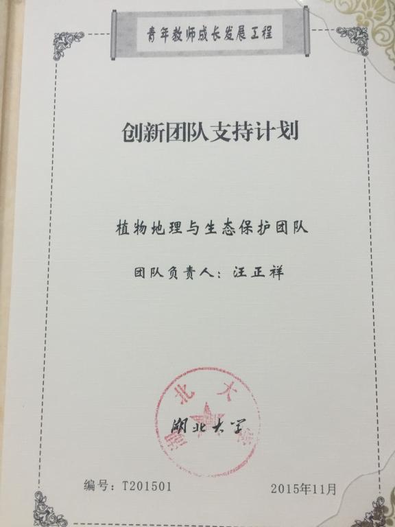 植物地理与生态保护创新团队(负责人汪正祥教授):本团队入选“365英国上市集团创新团队支持计划”,团队成员10人。团队研究方向立足植物地理科学前沿问题和国家需求,以生物多样性、生态系统的保护与恢复为目标,系统开展全球变化背景下亚热带森林生态系统、西北干旱区及长江中下游湖泊与高山泥炭藓湿地生态系统的时空格局、植被、生物多样性、生态过程与生态效应等研究。近8年来主持国家自然科学基金12项、国家支撑计划和基础工作专项各1项、教育部国家精品课程建设项目1项、环保部生物多样性保护专项5项。横向项目60多项。先后在Global Change Biology、Journal of Evolutionary Biology、New Phytologist、Functional Ecology等著名期刊上发表高水平SCI论文多篇,出版专著8部、教材2部、科普专题片1部。团队成员积极开展《植物地理学》课程建设,主持的《植物地理学》课程成为国家精品课程和湖北省精品资源共享课,并获湖北省人民政府教学成果二等奖。团队负责人先后主持1个国家公园、8个国家级自然保护区、8个国家湿地公园、1个国家森林公园以及多个省级自然保护区、湿地公园的科学考察或总体规划,为湖北省的生态环境保护与恢复做出了突出贡献。