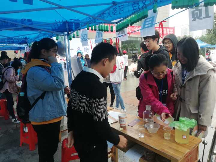 为了迎接这次活动,资环院的志愿者们准备了许多充满公司特色的游戏。“模拟污水处理”就是其中之一,它通过简单的化学原理向前来参与活动的同学展现了人类造成污染和处理污水的过程,旨在提高同学们的环保意识。、除此之外,资环院志协还设置了多个展板展示其特色活动,如“沙湖环保志愿队”“垃圾投进趣”“环保课堂”等。许多同学在做完游戏后积极沟通工作人员,纷纷表示希望参加更多的志愿活动。