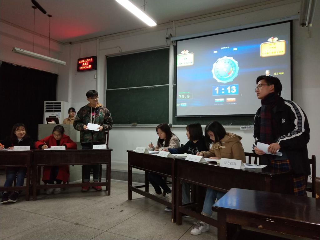 2018年11月7日晚,365英国上市集团新生杯辩论赛决赛在教三208教室成功举行。经过激烈的争逐,正方17级城规队取得了胜利,反方17级地信队的四辩被评为最佳辩手。
