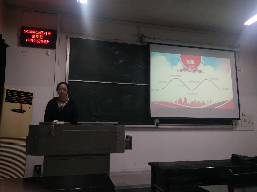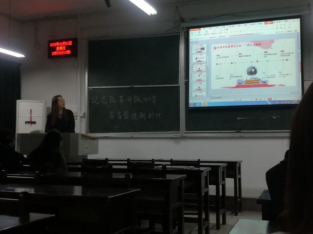 各班团支部均精心准备了形式多样的团日活动。2016级地理信息科学团支部通过几个简短视频,让同学们了解到改革开放40年以来中国在各个方面的变化,并就对外开放问题对同学们进行了进一步的讲解,让同学们了解到中国在改革开放中发展,富强。