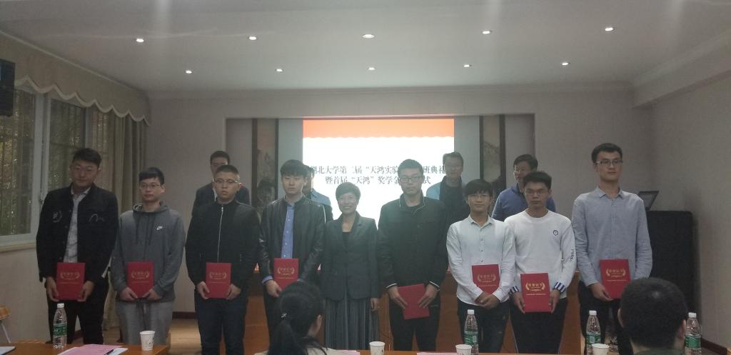 在高桂林秘书长宣读了首届“天鸿”奖表彰决定后,李俊华总监为第二届“天鸿班”学员和首届“天鸿”奖学金获奖代表颁奖,杨青青等两人获一等奖学金,李凤会等四人获二等奖学金,李凯等四人获三等奖学金。随后,李俊华总监以第一届“天鸿班”潘行行、吴思等学长学姐的实习生活为例,鼓励每一位同学通过“天鸿”合作班的教育和培养,努力增长专业知识,提升专业技能,成为对社会有用的复合型人才,并跟随企业的脚步共同成长,走向成功。