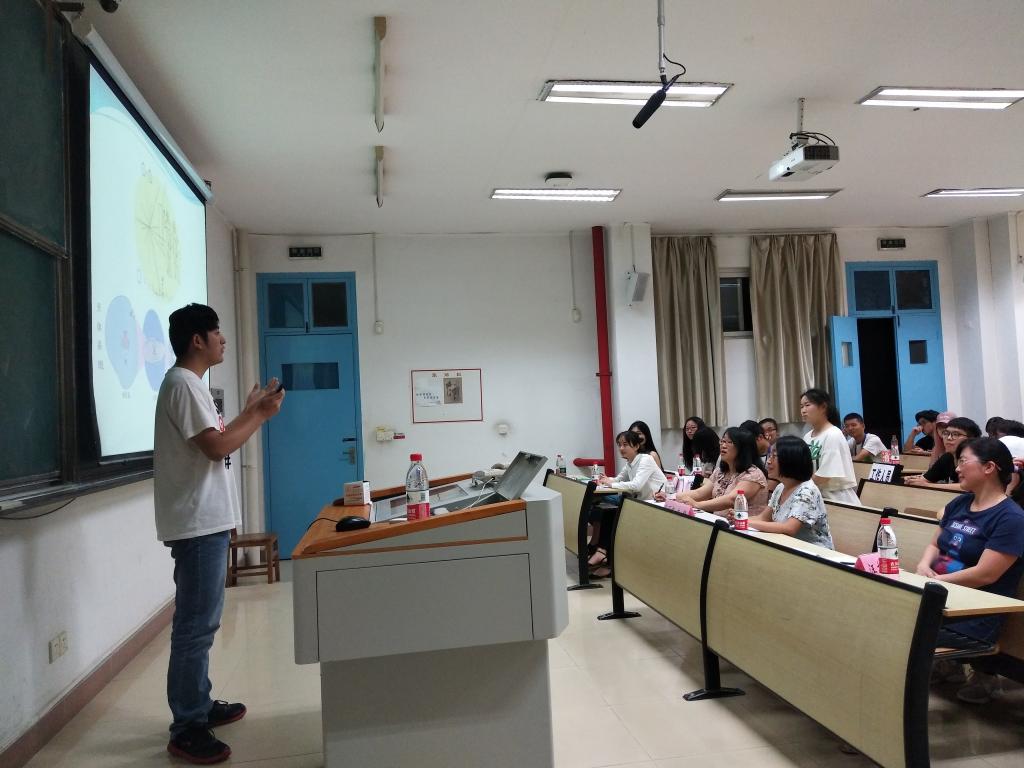 比赛中,六位选手用不同的主题、不同的授课风格带给评委老师和各位观众独具匠心的课堂体验。2016级生物工程专业的刘雨晨选手则充满了“教师范儿”,她充满条理性的表达给在场的评委和观众留下了深刻的印象。来自2016级地理科学专业的石天宇选手带领大家领略了一番宇宙世界的深邃寥廓,他创造性地提出了“星际快递”这样一个来源于生活有超越生活的例子,引来观众会心一笑。来自2017级地理科学专业的高雪源选手最后一个上场,他借助简洁清晰的板书、风趣幽默的语言,将赛场气氛带入高潮,现场掌声阵阵。