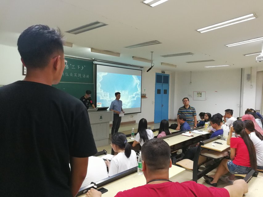 之后,院优秀团队盘龙菊艺传承团队和问渔团队先后上台,从不同角度向同学们介绍了优秀团队的建设经验。在提问环节中同学们争先恐后地向老师和优秀团队提出自己的疑问: “暑期社会实践中,指导老师的作用是什么?”“怎么安排好调研的时间?”等,并得到老师和团队代表的满意回答。至此,宣讲会在热烈的掌声中结束。