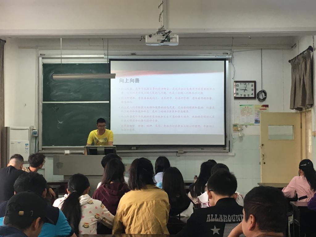 最终,班长杨德威对同学们也提出要求:“我们要自觉践行社会主义核心价值观,学习贯彻党的十九大精神。培养向上向善的品德,作有为担当的新时代好青年!”