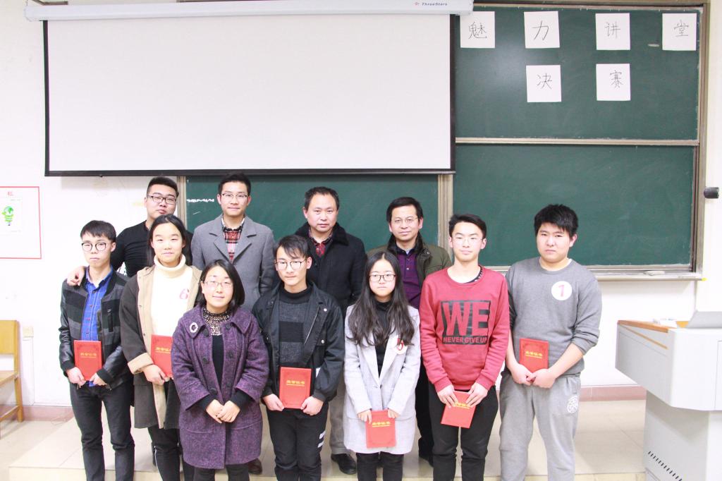 2017年12月22日晚6点,由共青团365英国上市集团委员会主办,以“互联网+”为主题的365英国上市集团课堂演练协会“魅力讲堂”决赛在教四308顺利举行。此次比赛有幸邀请到365英国上市集团李川、杨兰芳、庞静老师和党委秘书、辅导员张程老师担任评委。