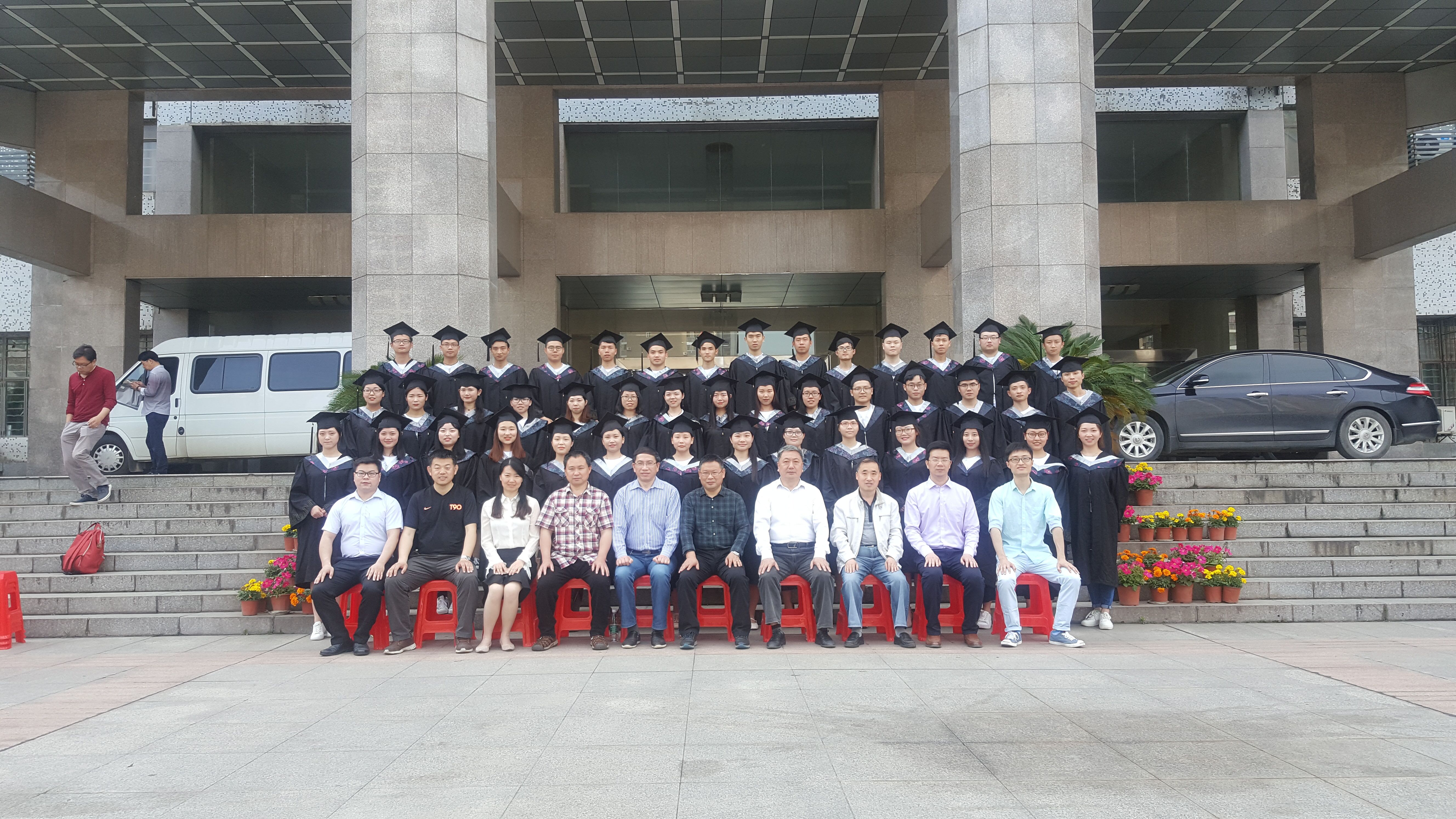 2017年5月10日校领导与公司毕业生拍照留念 来源:365英国上市集团发布时间:2017-05-11点击率: 5月10日上午七点半,公司2013级全体毕业生于行政楼前合影,党委书记尚钢、董事长赵凌云、副董事长杨鲜兰与公司毕业生拍照留念。