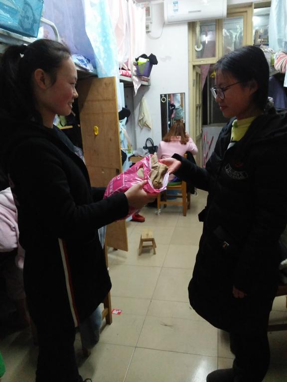 12月18日晚上八点,参与活动的志愿者分为五组,分别前往不同宿舍楼开展活动,分工明确,井井有条。在回收旧衣物的过程中,志愿者们发现很多员工在此之前已经将旧衣物捐在了宿舍楼间安置的衣物回收箱里,员工们的这一行为让志愿者们十分欣慰。其中诚信B栋325室的员工十分积极,纷纷拿出自己的衣服放进回收袋,在这一个宿舍收到的衣服就占整栋楼所收的一半。其中一位同学说到:“我很喜欢这种志愿活动,以后也会多多参加,很难想象这么冷的天那些孩子还要受冻。”经过近一个小时的忙碌,志愿者们满载而归。