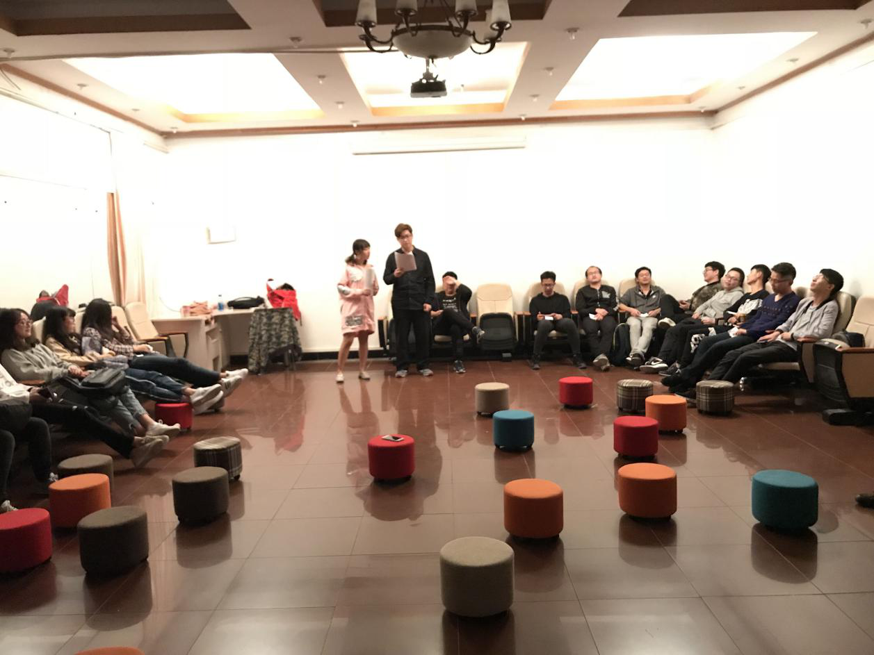 10月27日晚上七点,16环国班级团辅活动于老员工心理健康中心举行。此次活动以小组讨论模式展开。心理委员将全班同学分成五个小组,先后开展了“五样”、“自我及他人的评价”、“时光列车”三个游戏。