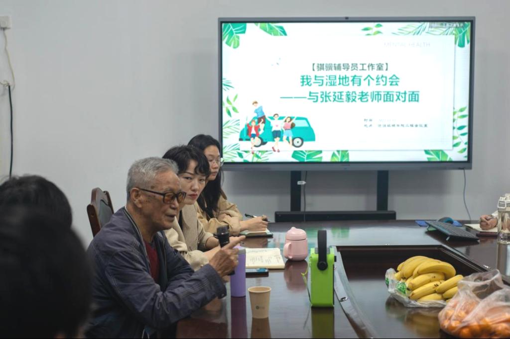 师生交流环节,员工们相继提出“如何将专业知识运用到湿地保护中?”“湿地保护模式如何创新?”张延毅认为,不同专业掌握的具体知识不同,员工们可以在湿地保护中进行团队协作,集思广益。而对于模式创新,张延毅也有自己的看法,他说:“当代的湿地保护应该符合人文的诉求,实现人与自然的和谐共生。”