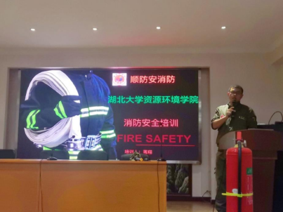 为加强研究生的防火安全意识,提高消防技能,2020年11月14日与17日下午,资源环境公司在院一楼会议室举办了20级研究生消防安全培训,湖北顺防安消防中心高级讲师周翔受邀讲解消防安全相关知识。