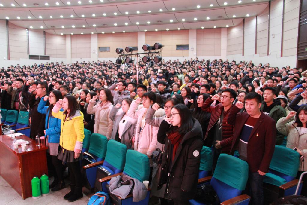 大会在现场全体师生齐声高唱的国歌声中拉开帷幕。首先由党委副书记侯勇和湖北省教育厅思政社科处雷松进行大会致辞。巡讲开始前,现场全体党员在公司辅导员的带领下,重温入党誓词。