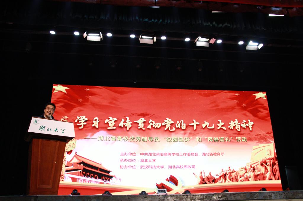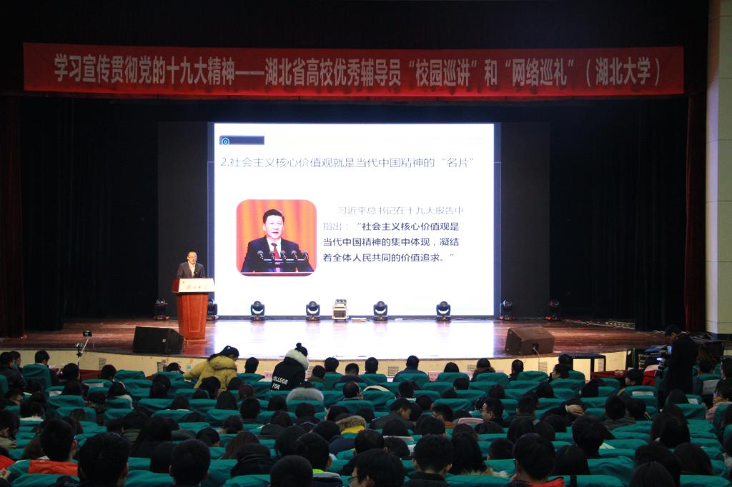 2017年12月13日下午,由湖北省教育厅主办的学习宣传贯彻党的十九大精神——湖北省高校优秀辅导员“校园巡讲”和“网络巡讲”活动在365英国上市集团小礼堂举行。