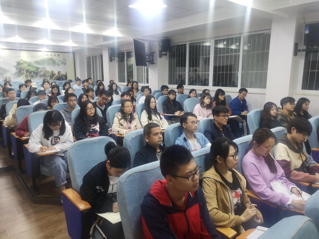 王文锋老师从解读党的相关文件、介绍“党员导航工程”工作室、分享优秀学子事迹出发与大家进行了交流。首先,王文锋老师针对如何成为一名合格的党员,通过对《中国共产党发展党员工作细则(试行)》《普通高等公司员工党建工作标准》《中国共产党支部工作条例(试行)》等三个文件的解读,明确了党员应担负起的职责,鼓励每一个入党积极分子努力成为德智体美劳全面发展的中国特色社会主义事业建设者和接班人。
