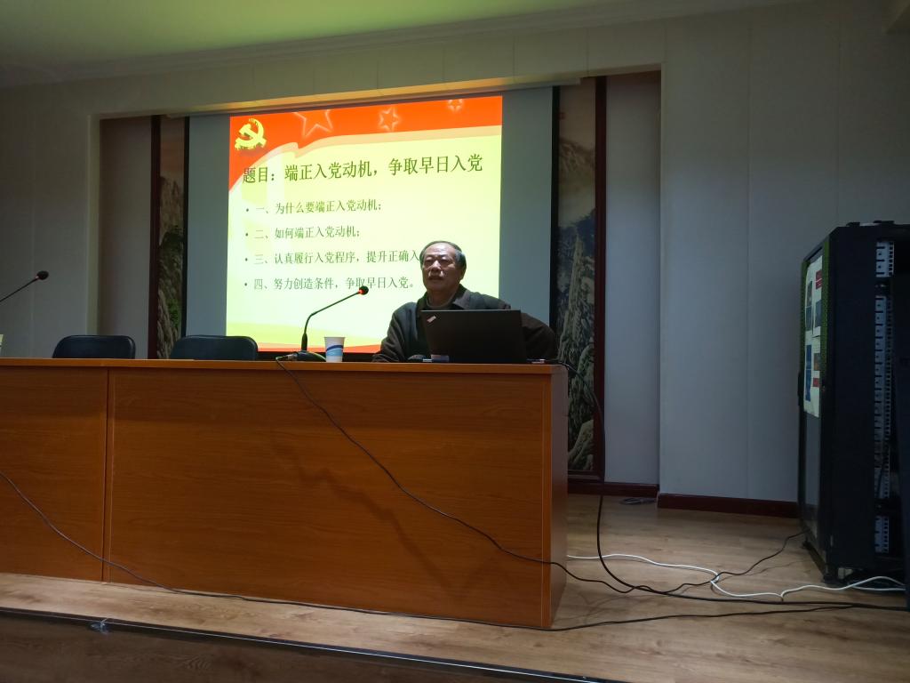 开班典礼结束后,彭惠楠老师围绕入党动机是什么、为什么要端正入党动机以及怎么端正入党动机给全体学员作“端正入党动机,争取早日入党”的首场辅导报告。他表示,在组织上入党是一时的事,在思想上入党却是一辈子的事,鼓励学员坚定一个目标,做好两项学习工作,接受三个帮助,做好四件事情”,通过行动创造条件,争取早日入党。