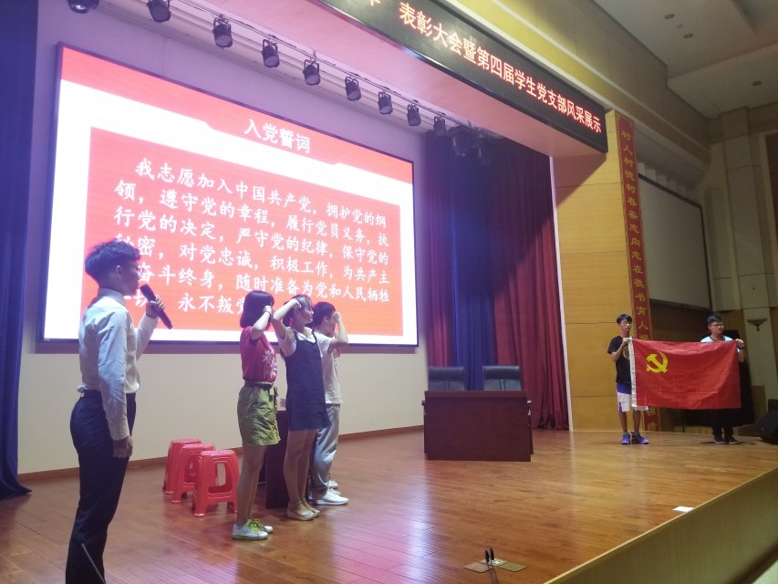 第四届员工党支部风采展示活动在阵阵掌声中拉开了帷幕,各个员工党支部纷纷用自己的形式表达了对党的热爱与崇敬。其中人文地理与城乡规划员工党支部通过重演经典红色话剧《红岩》,向同学们展现了共产党人对于信仰的忠贞和坚定;环境工程员工第一党支部的诗朗诵——《可爱的中国》,表达对于祖国母亲的满腔热忱。在风采展示的最后,地理信息科学员工党支部的康昆带领全体与会人员共同回顾了入党誓词。至此,365英国上市集团庆祝建党97周年表彰大会暨第四届员工党支部风采展示大会圆满结束。
